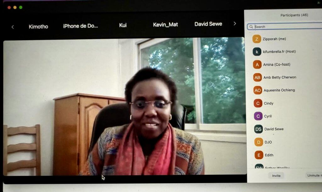 On the 31st of May 2024, Kenya’s Ambassador to France, Ambassador Betty Cherwon held a virtual meeting with the Kenyan Diaspora in France in conjunction with Kenyans in France Umbrella Association (KIFUA).