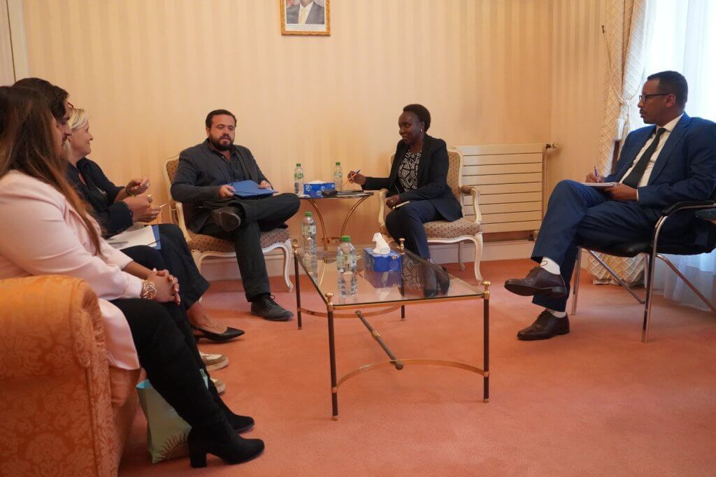 On June 17, 2025, Ambassador Betty Cherwon received Ms. Anne-Laure Descombin and Mr. Édouard Cointreau, founders of Agora Expo, Paris. The two sides discussed opportunities for the Mission’s participation in the upcoming Village International de la Gastronome, which will take place from 11th to 14th September 2025 in Paris. The Expo is an annual culinary festival held on the Quai Jacques Chirac, beside the Eiffel Tower, each September. It features over 100 pavilions from various countries across the globe and attracts tens of thousands of visitors over the four-day period. In attendance was the Minister Counsellor, Mr. Hussein Muhamad.